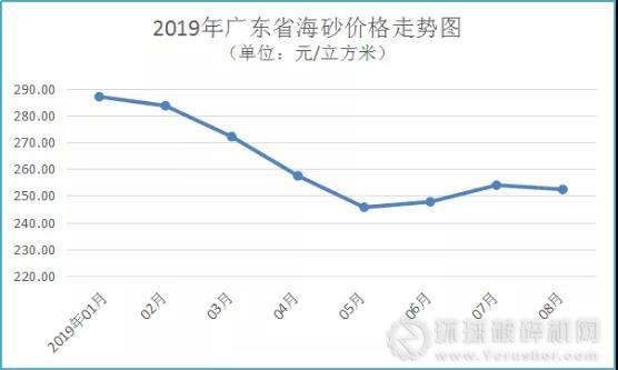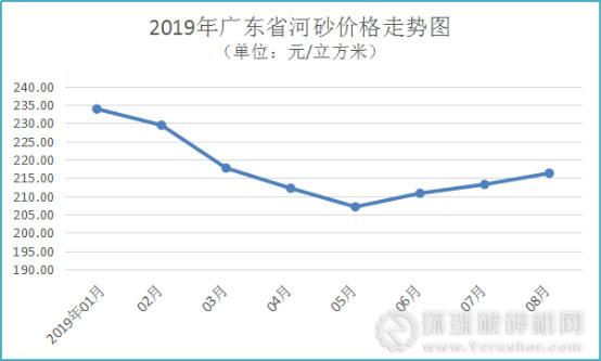 廣東省河砂價(jià)格連續(xù)3個(gè)月上漲,8月均價(jià)216元/方